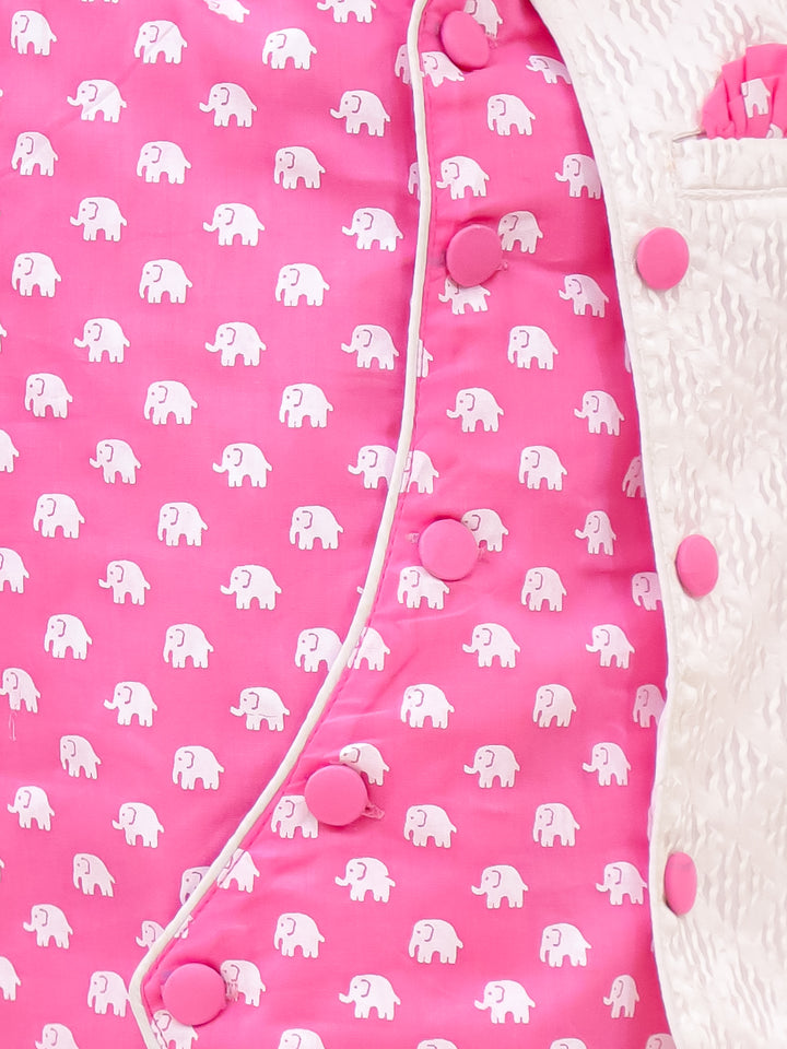 Twisha Boys Cotton Fullsleeves All Over Printed kurta with Dhoti - BabyPink & White