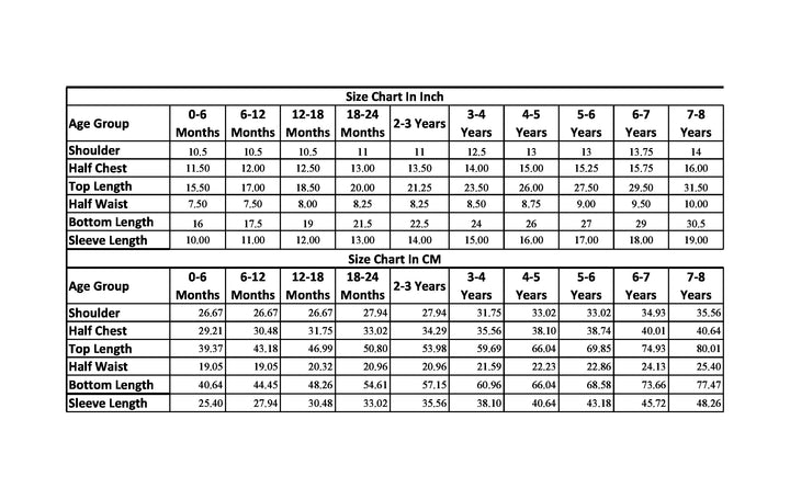 0-6M, 6-12M, 12-18M, 18-24M, 2-3Y, 3-4Y, 4-5Y, 5-6Y, 6-7Y, 7-8Y |