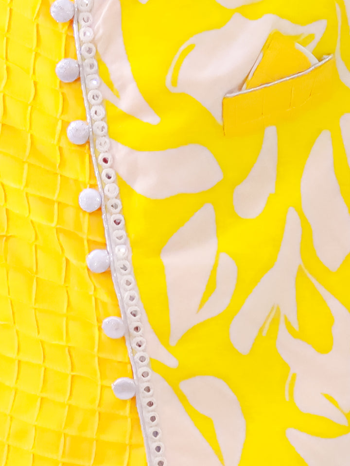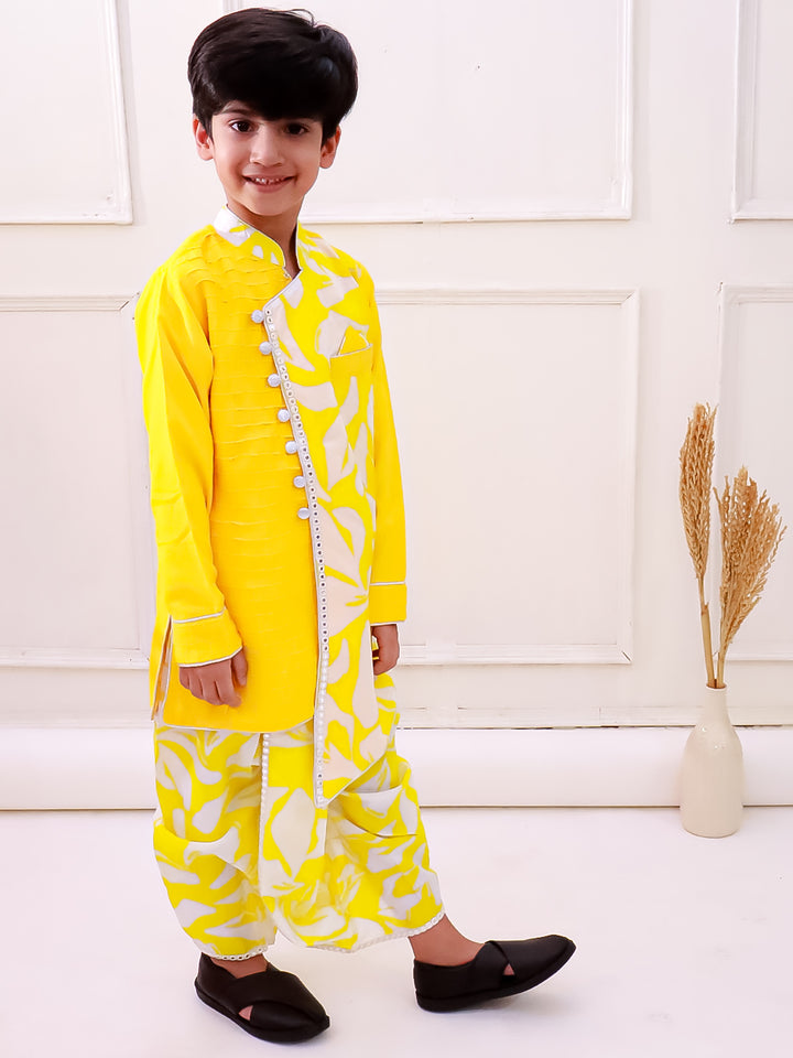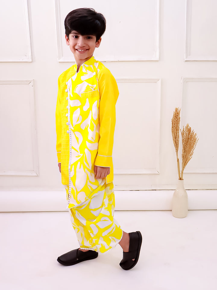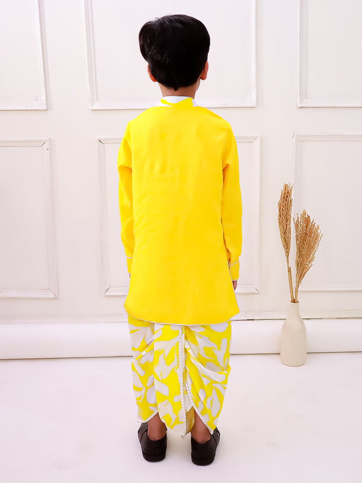 Twisha Boys Cotton Fullsleeves Emblished kurta with Dhoti - Yellow & White