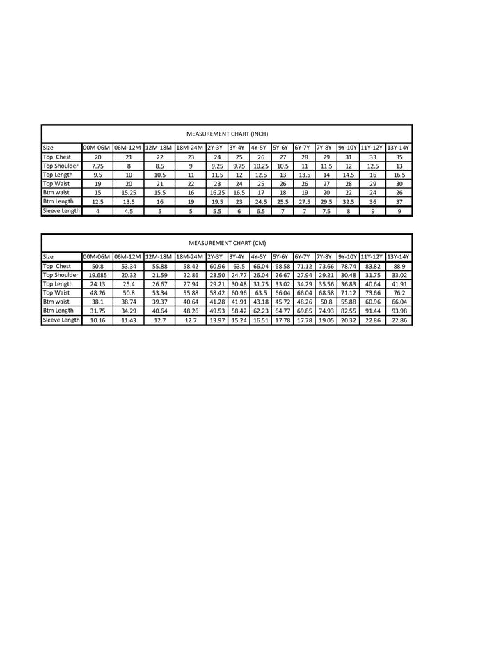 0-6M, 6-12M, 12-18M, 18-24M, 2-3Y, 3-4Y, 4-5Y, 5-6Y, 6-7Y, 7-8Y, 9-10Y, 11-12Y, 13-14Y |