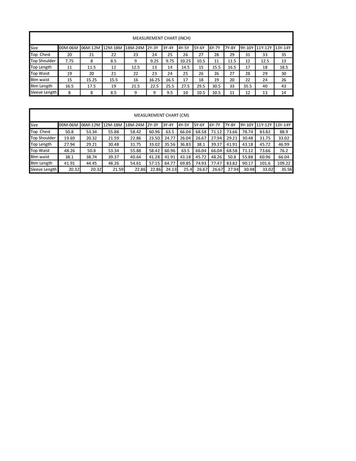0-6M, 6-12M, 12-18M, 18-24M, 2-3Y, 3-4Y, 4-5Y, 5-6Y, 6-7Y, 7-8Y, 9-10Y, 11-12Y, 13-14Y |