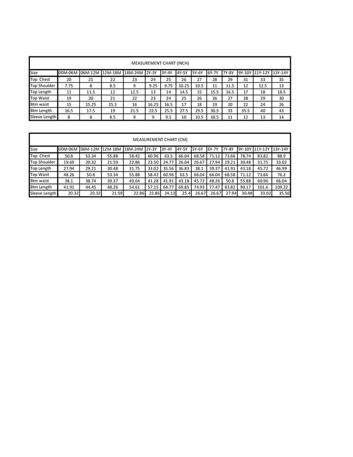 0-6M, 6-12M, 12-18M, 18-24M, 2-3Y, 3-4Y, 4-5Y, 5-6Y, 6-7Y, 7-8Y, 9-10Y, 11-12Y, 13-14Y |