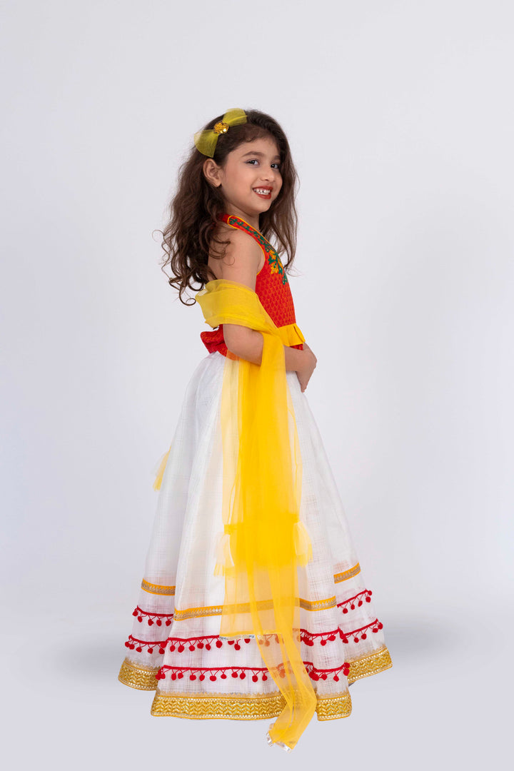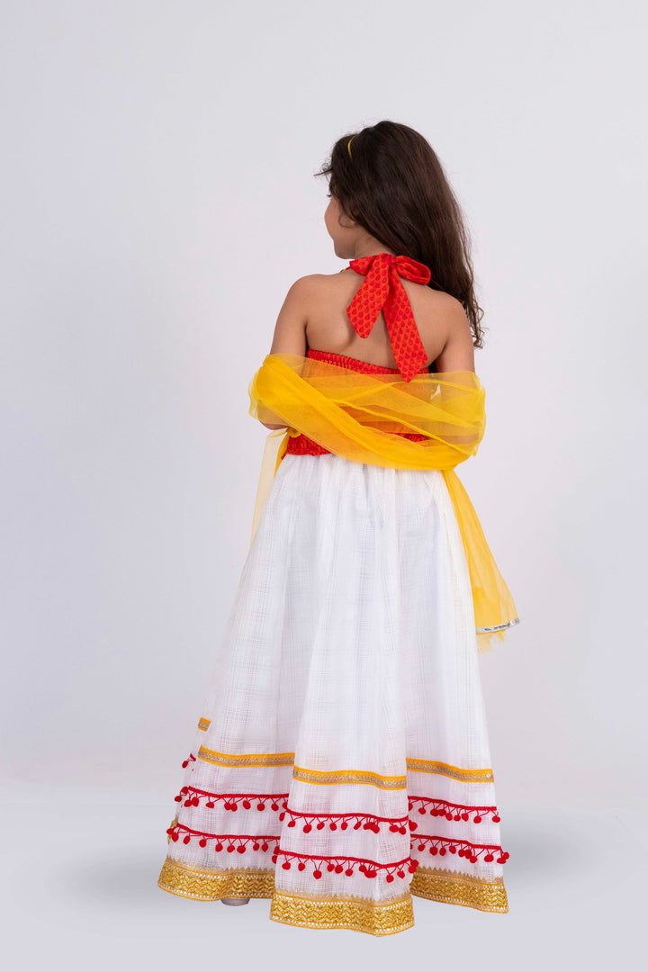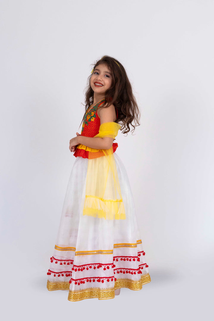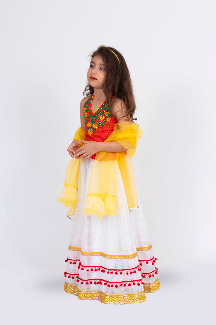 Twisha Girls Halterneck Embroidered Top With Lehenga Set - Rust & White