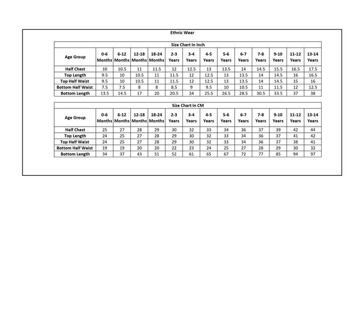 0-6M, 6-12M, 12-18M, 18-24M, 2-3Y, 3-4Y, 4-5Y, 5-6Y, 6-7Y, 7-8Y, 9-10Y, 11-12Y, 13-14Y |