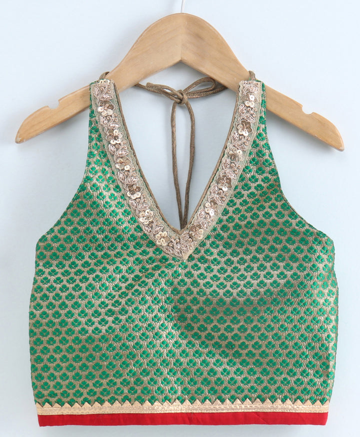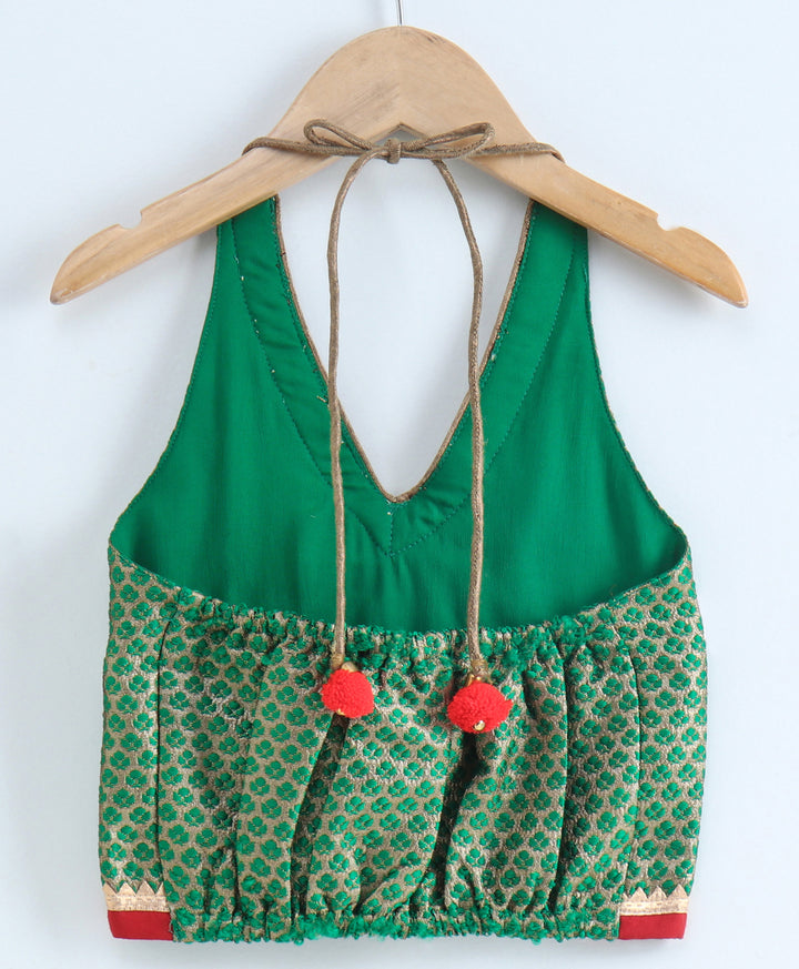 Twisha Woven Brocade Sleeveless Embellished Top With Printed Sharara-Green & Red