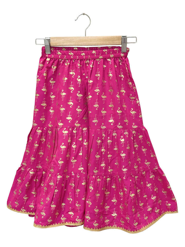 Twisha Woven Chanderi Sleeveless Solid Top With Printed Sharara-Limegreen & Pink