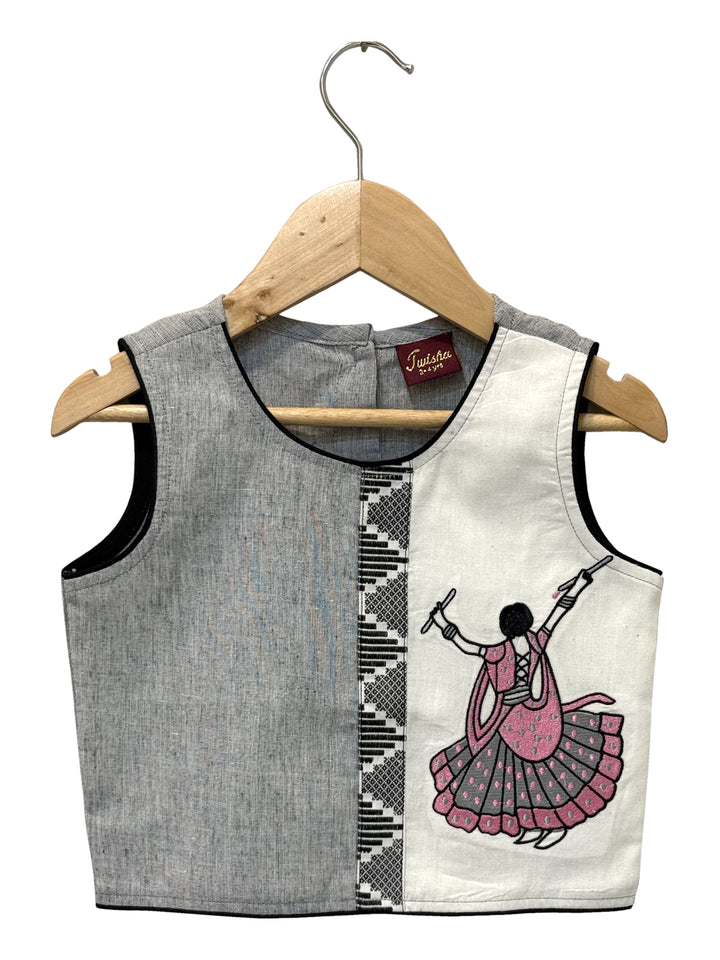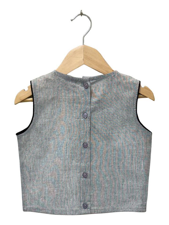 Twisha Woven Cotton Sleeveless Placement Embroidered Top With Palazzo-Grey & Coral