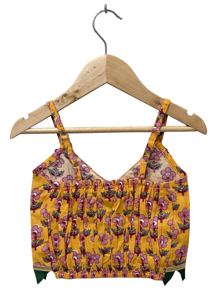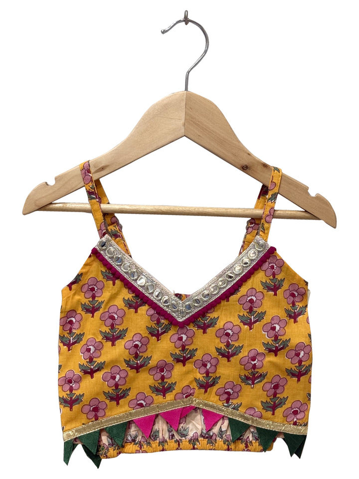 Twisha Woven Cotton Sleeveless Printed Top With Printed Lehenga-Mustard & Green