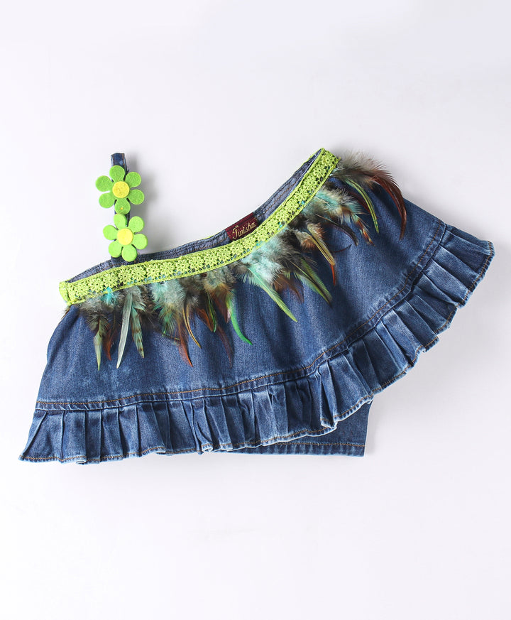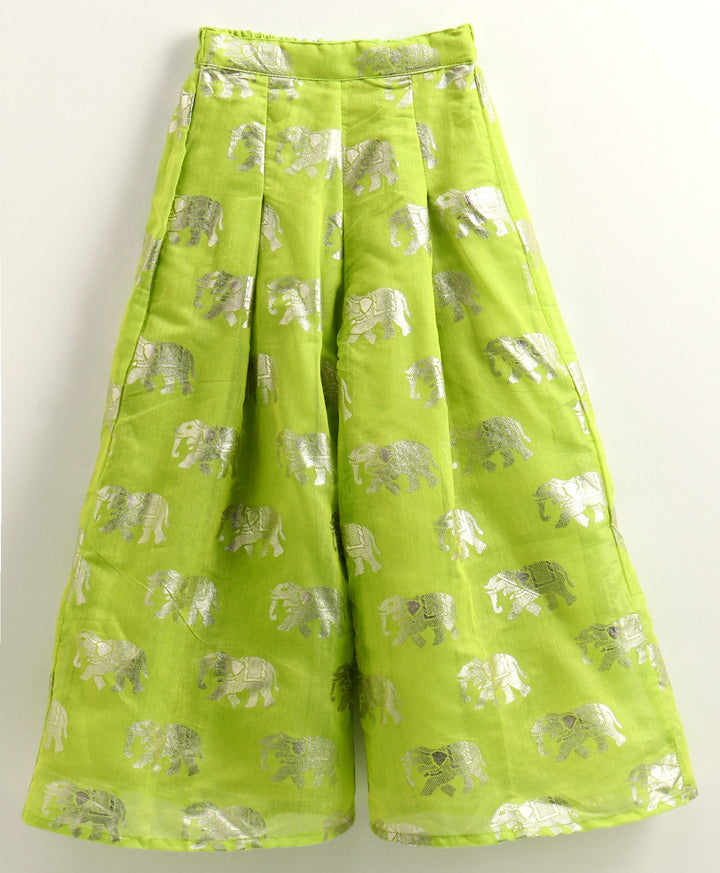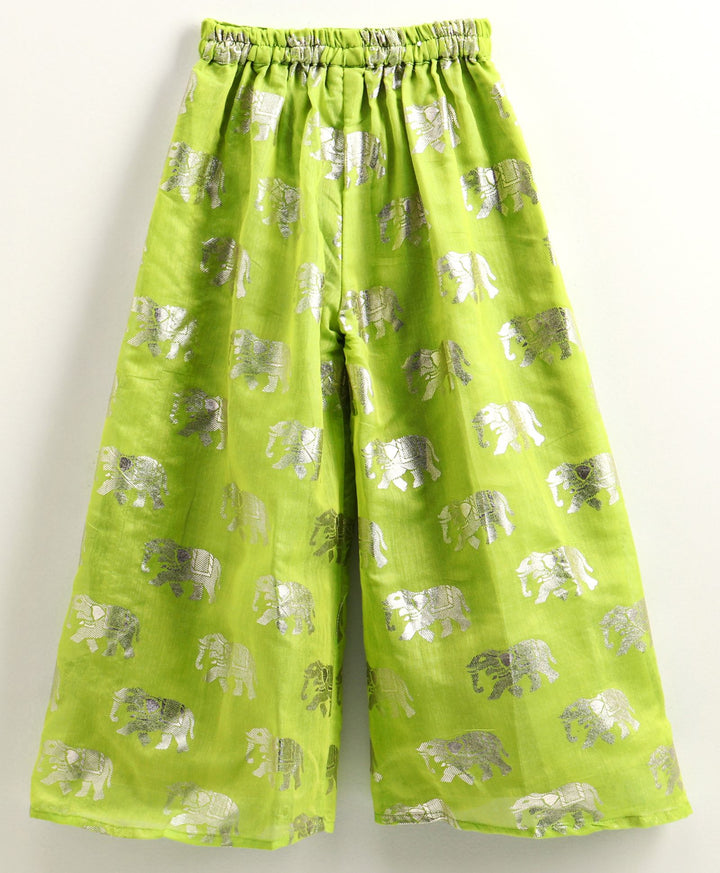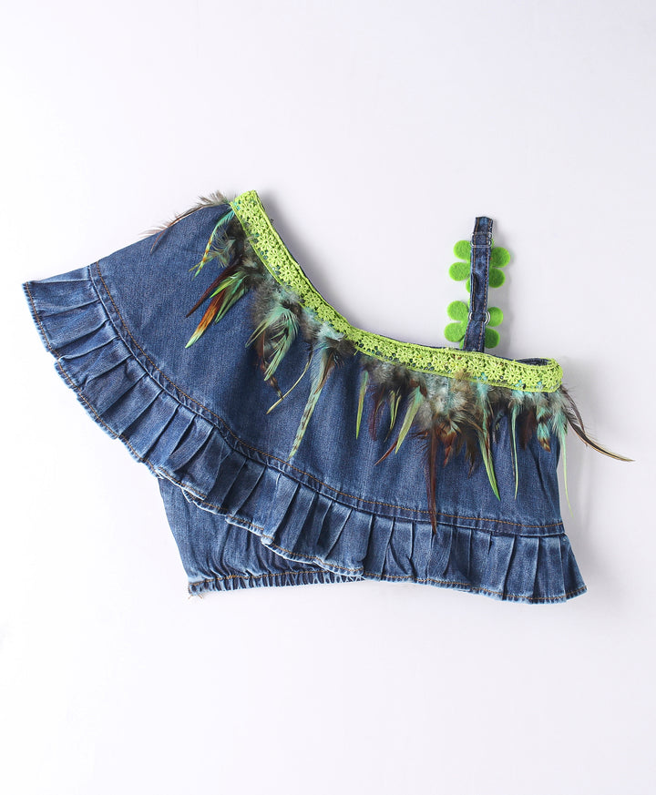 Twisha Woven Denim Sleeveless Solid Top With Printed Palazzo-Blue & Limegreen