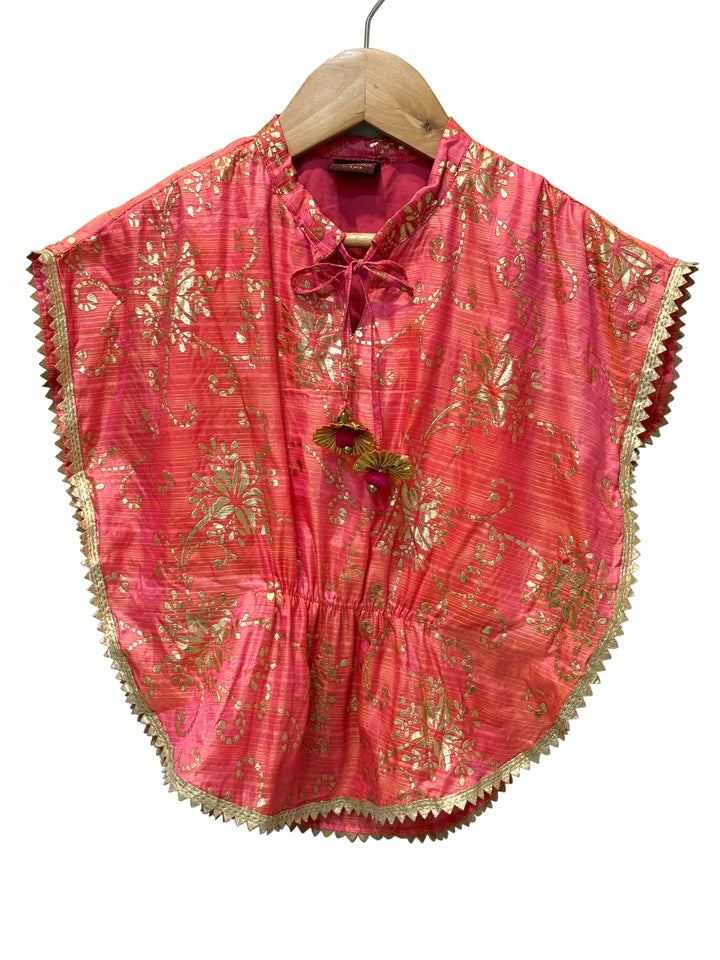 Twisha Woven Embellished Top With Palazzo-Coral & Limegreen