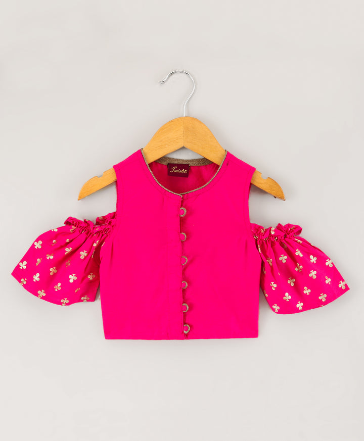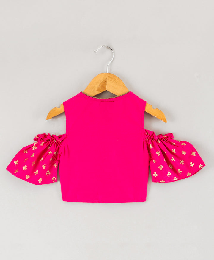 Twisha Woven Half Sleeves Printed Top With Printed Lehenga-Pink & Green