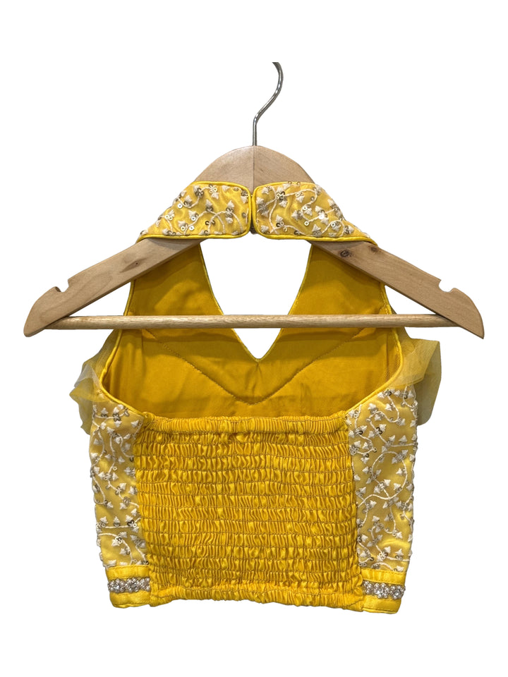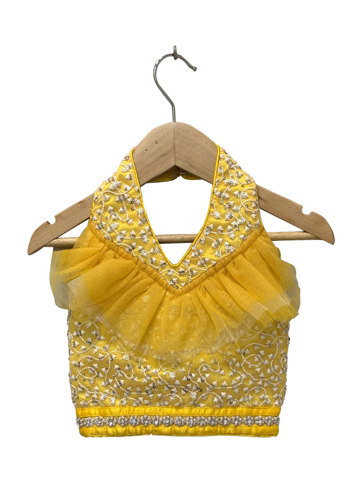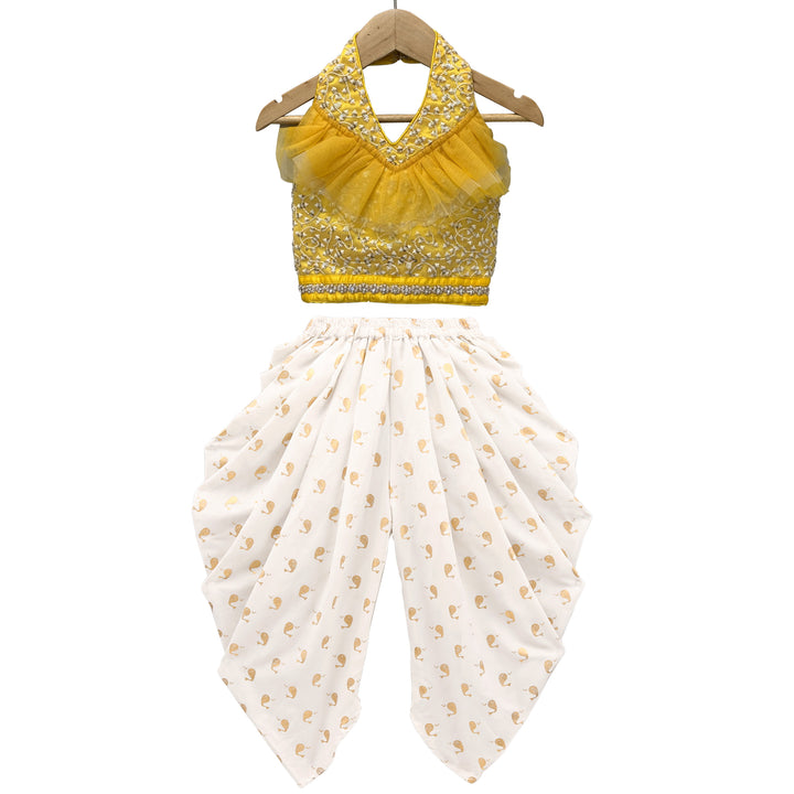Twisha Woven Sleeveless All Over Embroidered Top With Printed Dhoti-Yellow & White