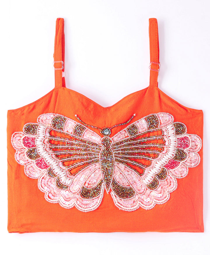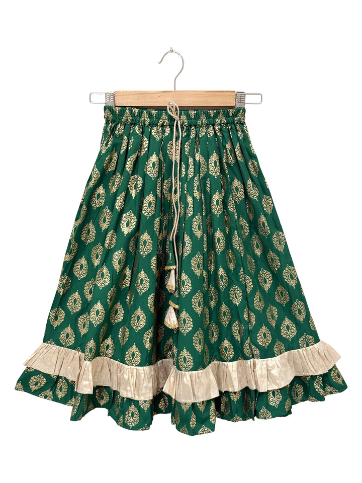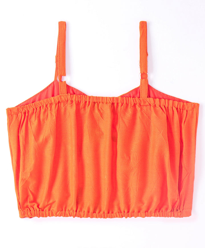 Twisha Woven Sleeveless Placement Embroidered Top With Printed Lehenga-Orange & Green