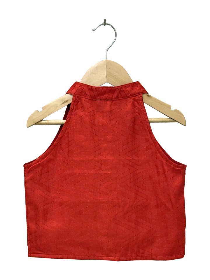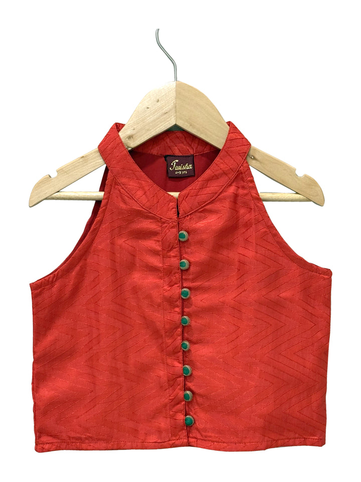 Twisha Woven Sleeveless Solid Top With Printed Lehenga-Red & Green
