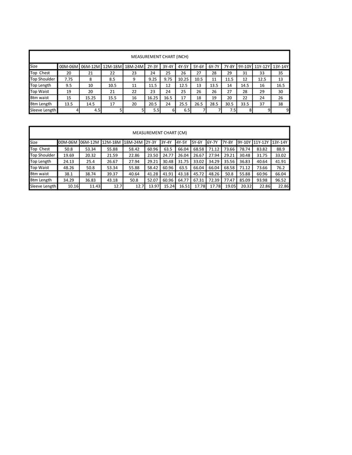 0-6M, 6-12M, 12-18M, 18-24M, 2-3Y, 3-4Y, 4-5Y, 5-6Y, 6-7Y, 7-8Y, 9-10Y, 11-12Y, 13-14Y |