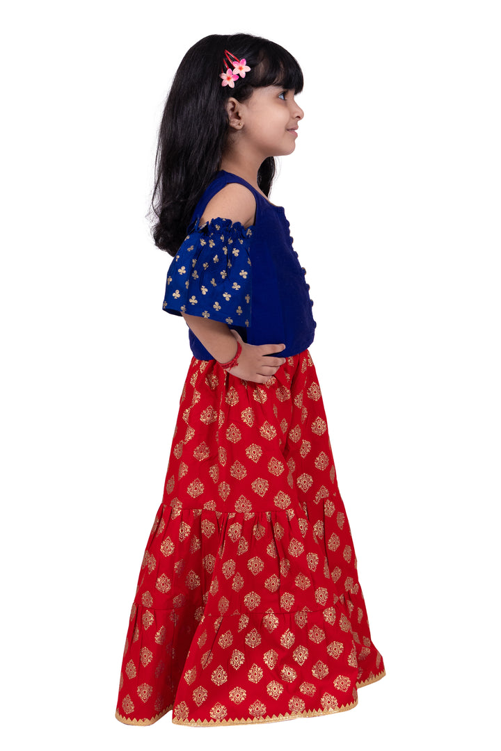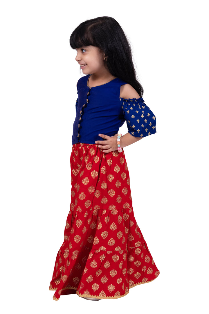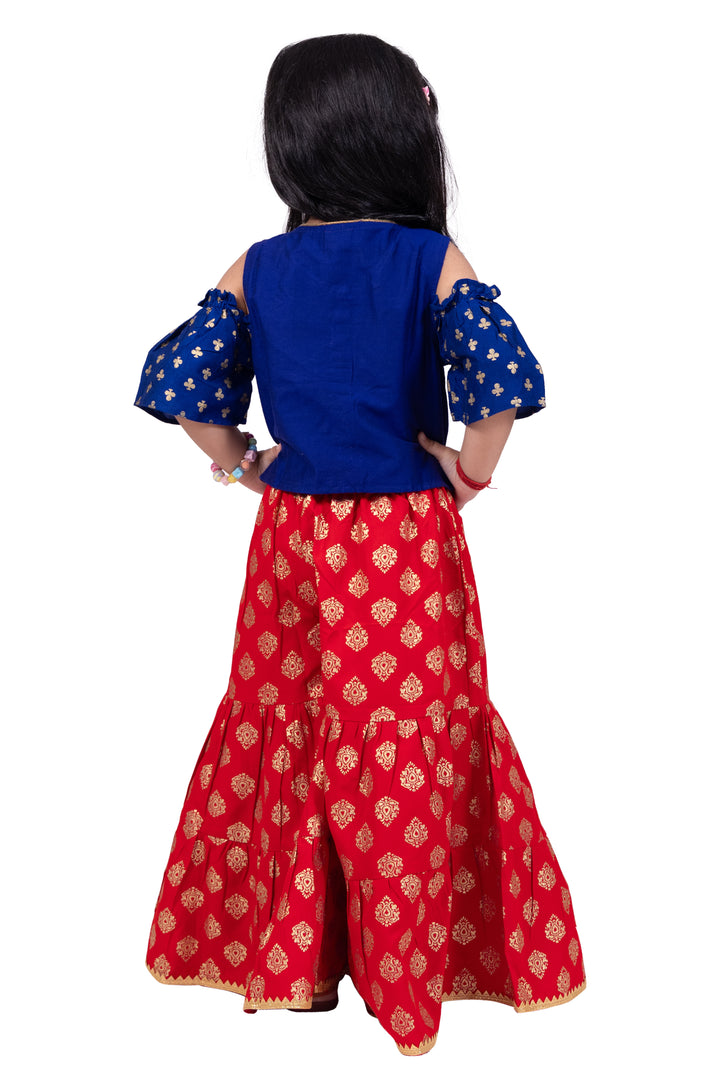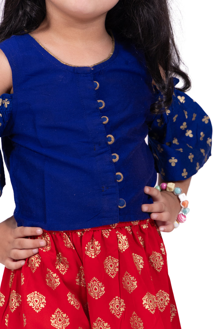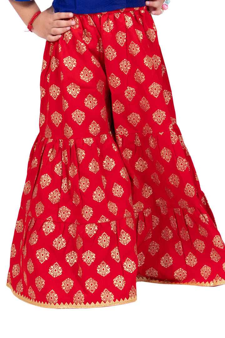 Twisha Girls Half Sleeves All Over Printed Top & Sharara-Blue & Red