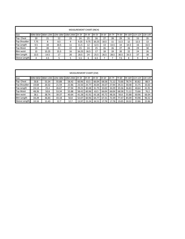 0-6M, 6-12M, 12-18M, 18-24M, 2-3Y, 3-4Y, 4-5Y, 5-6Y, 6-7Y, 7-8Y, 9-10Y, 11-12Y, 13-14Y |