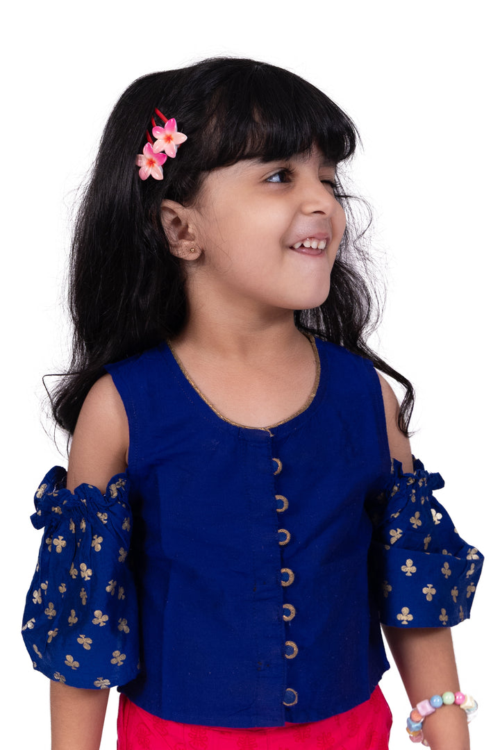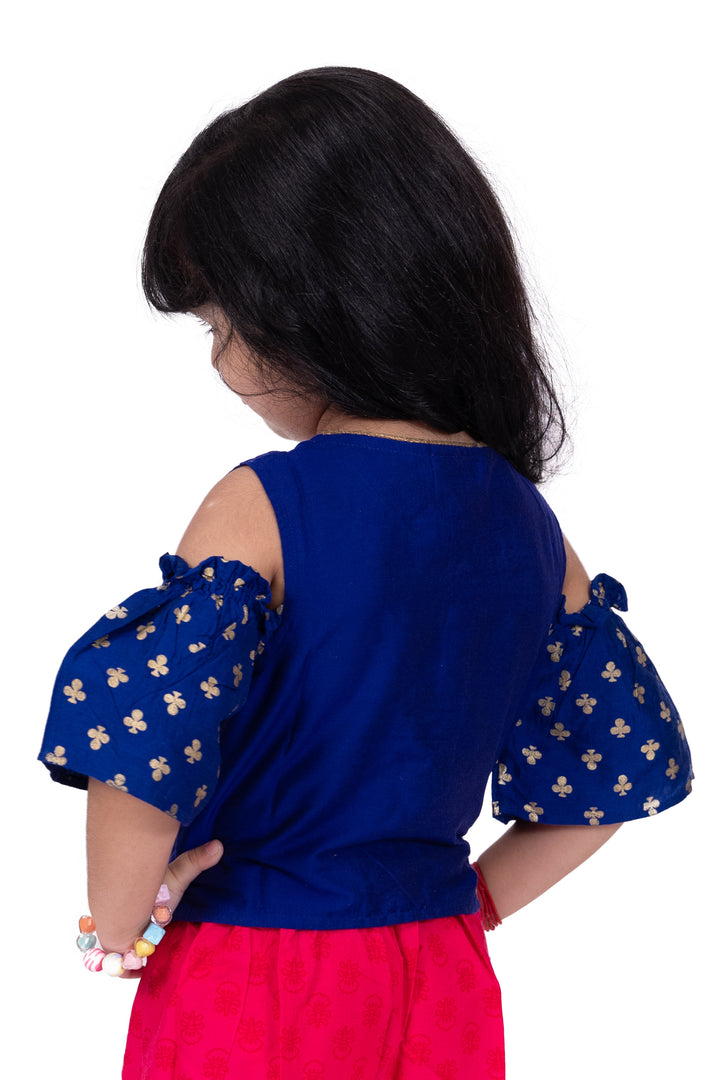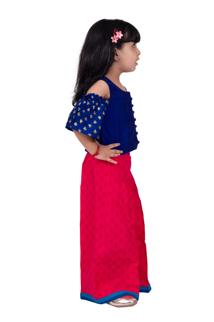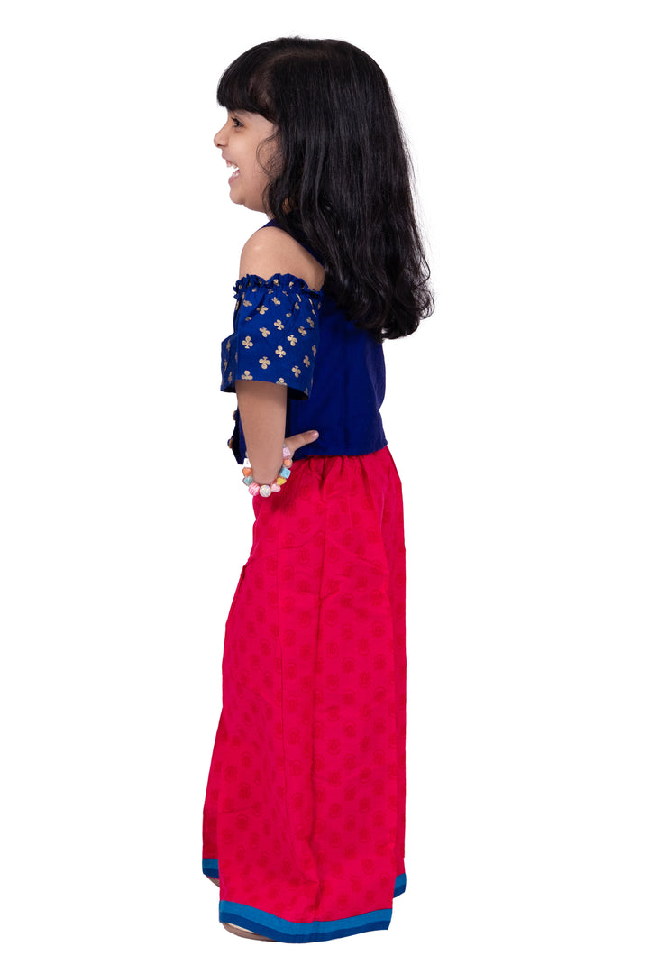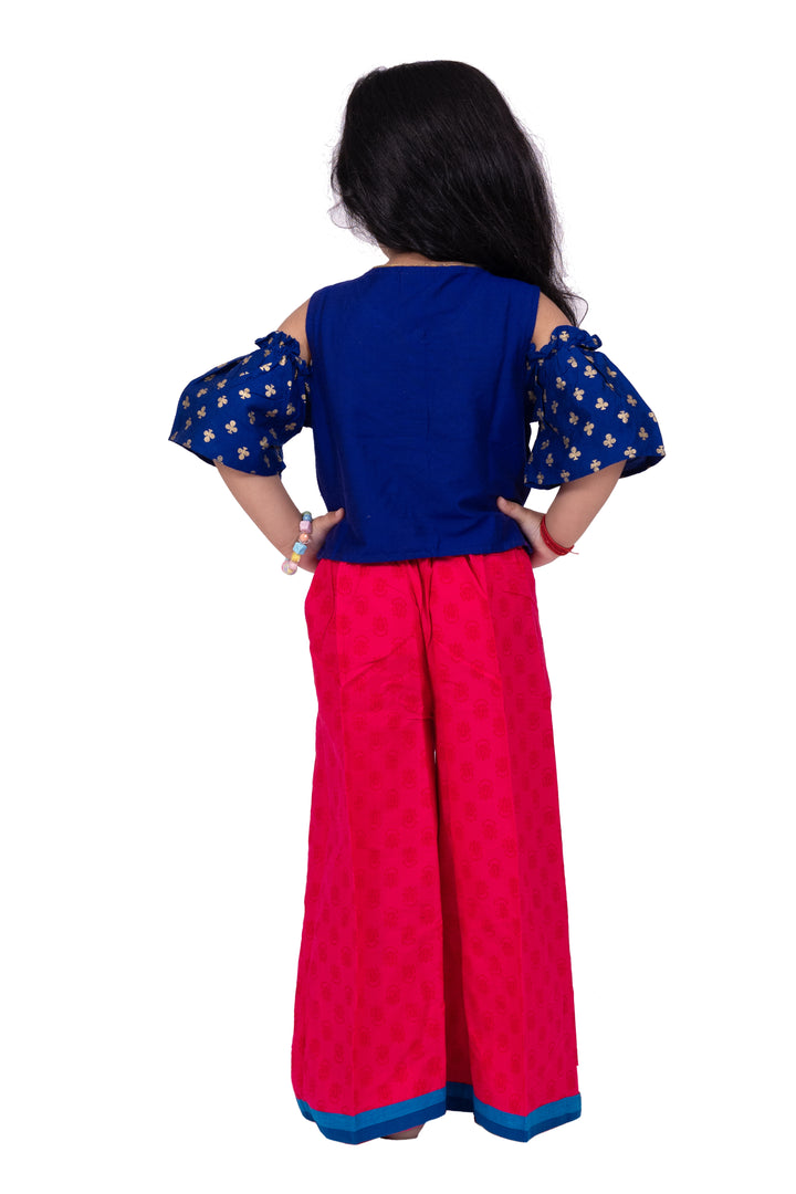 Twisha Girls Half Sleeves Foil/Glitter Print Top With Printed Palazzo-Blue &Pink