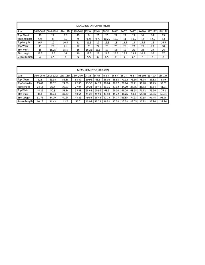 0-6M, 6-12M, 12-18M, 18-24M, 2-3Y, 3-4Y, 4-5Y, 5-6Y, 6-7Y, 7-8Y, 9-10Y, 11-12Y, 13-14Y |