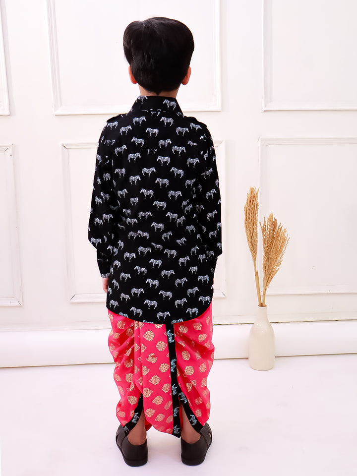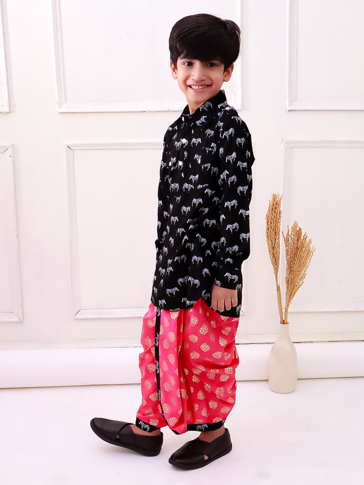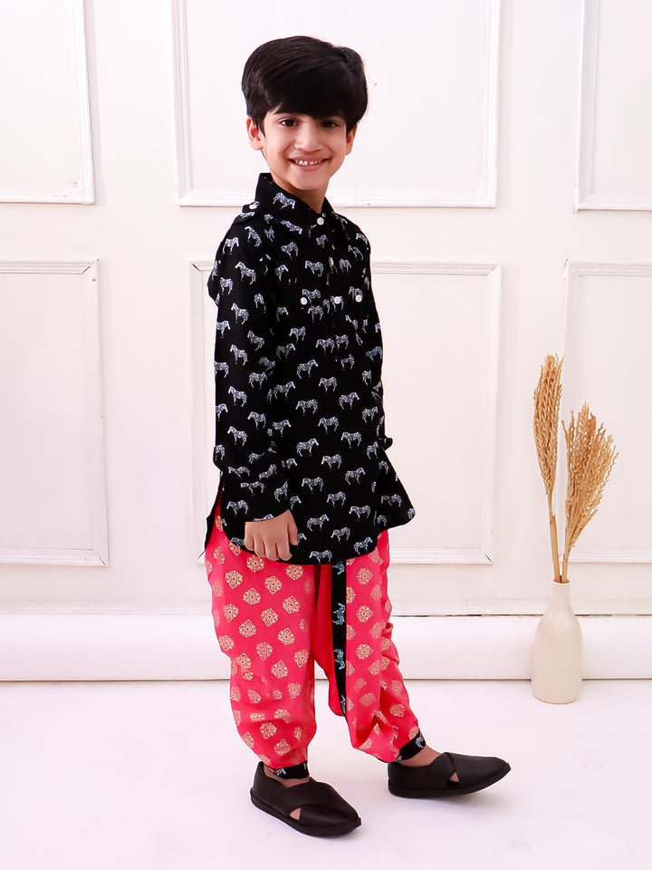 Twisha Boys Rayon Fullsleeves Zebra Printed kurta with Dhoti - Black & Coral