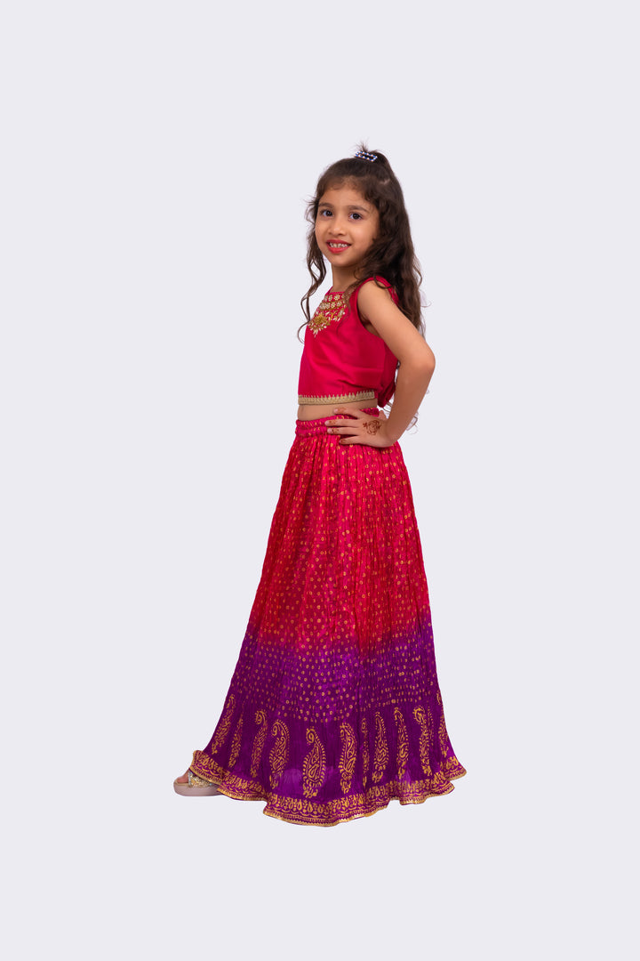Twisha Girls Sleeveless Embroidered Top with Lehenga -Pink & Purple